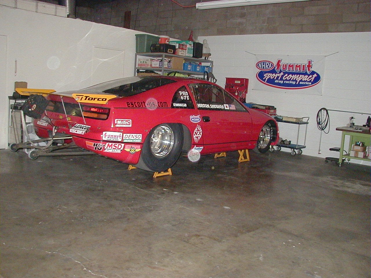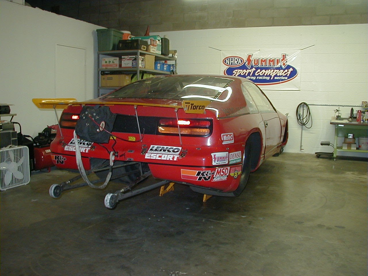 いよいよ本格的なパイプフレームの時代がやってきた……そう思わせてくれたのが、このエスコート300ZXの登場だった。NHRAのプロストックシャシーをベースにして、FRPカウルの作り、内装材の質感、全体のフォルムと、いろいろな部分を細かくチェックしても、非常にキレイなマシンだ。